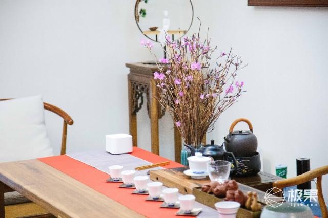 为了测试网速,因此我设置好后特意把副路由拿到茶室各个房间角落里插上电源体验一番,白色简约的外观很好的融入茶室环境,在我用过的所有路由器当中,这是颜值最高的一个了。