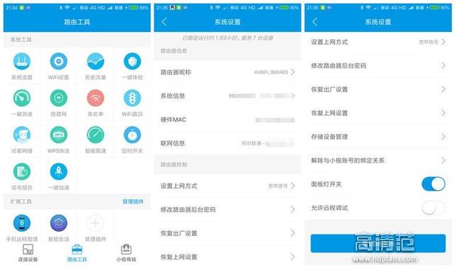 比如“系统设置”,可以看到路由器的系统信息、联网信息、和上网方式。还可以修改路由器的后台密码和恢复出厂设置。