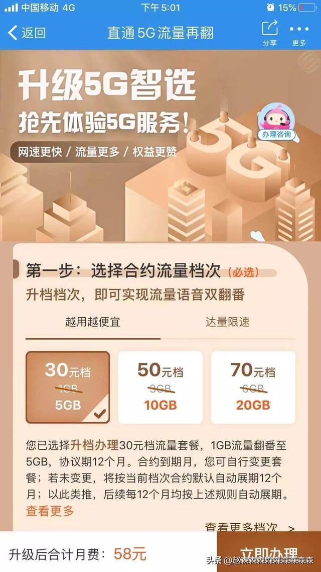 测速了半天,很心疼我的流量,想想要不我换个5G套餐算了,一上网,看到中国移动不用换套餐,直接升级??如果客户已经是5G套餐,不用换套餐,直接去扩容下,就可以享受5G权益(包括5G网络权益、5G业务权益、会员权益、服务权益)