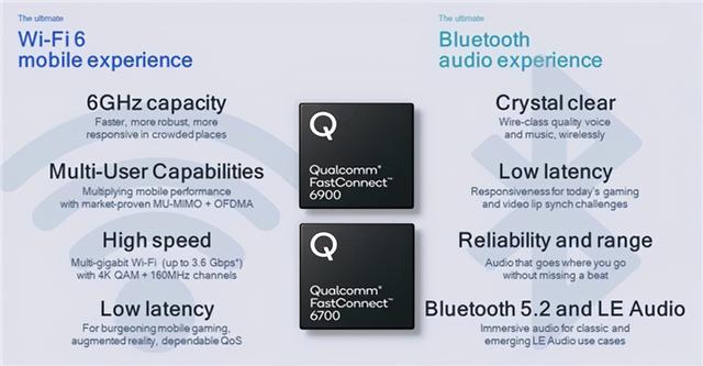 比如在手机侧,高通此前就已经发布了FastConnect移动连接系统,其中包括多FastConnect 6700、6800以及6900多个选项,目前骁龙888、骁龙865、骁龙778G在内的众多5G芯片均已经支持FastConnect移动连接系统。