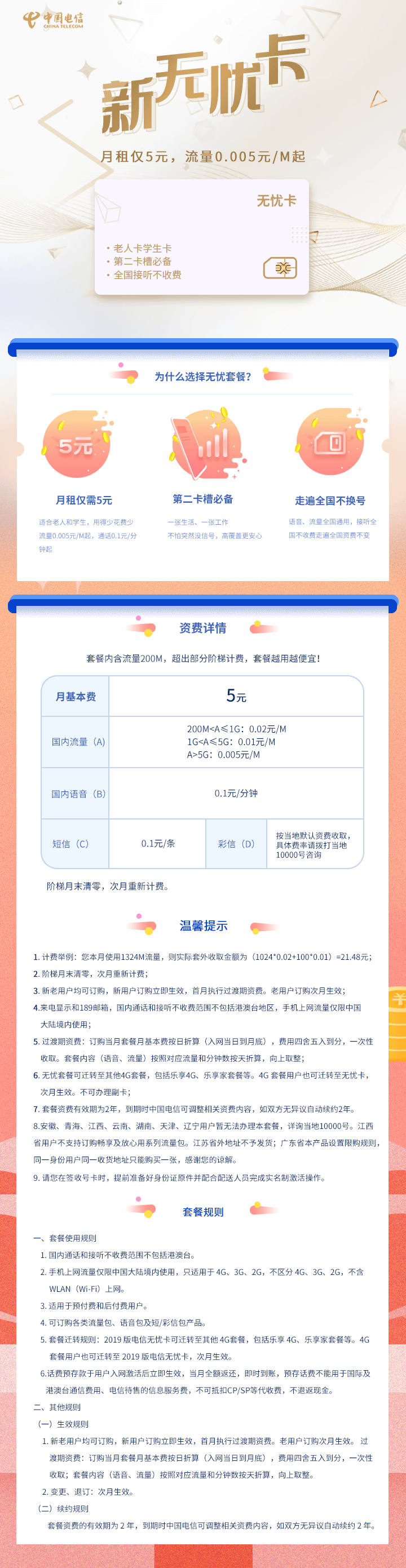 免费限量申请,随时停办全国可用不限速直接在文中申请二维码下单申请即可无语音功能,可以收发短信,正规卡,可登录电信手厅app查询套餐。办理要求【1】16-60岁用户可办理、超出无法办理。归属地号码随机不可选、支持异地注销,10000资费可查. 4G 5G手机都可以正常使用。【2】无需照片申请,提供收货信息,收...