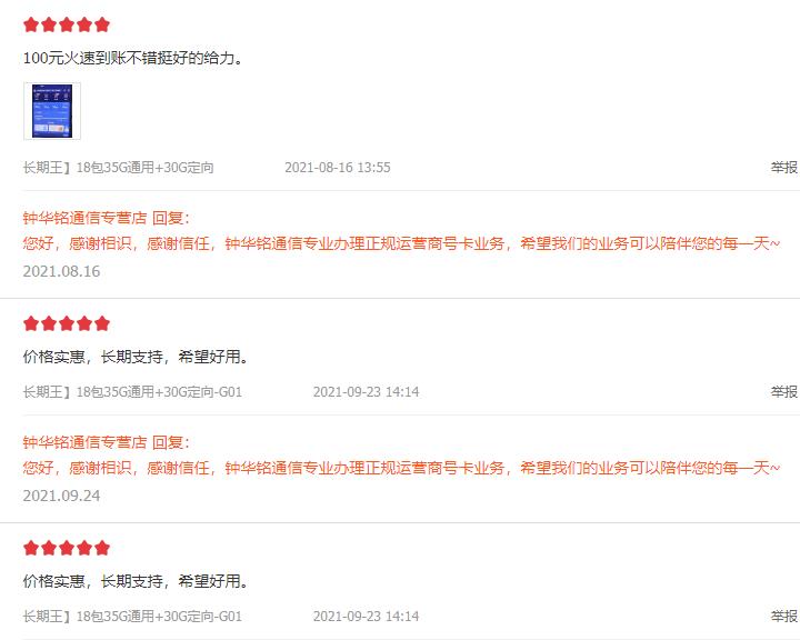 这张电信5G卡在JD和TMALL等商城月销量总共高达近5万张的记录如下图:从图上我们可以看到,电信5G卡资费分为六种,分别是:14.8元包20G流量,19.8元包40G,24.8元包60G,最高可用200G流量。除了资费价格便宜,其稳定性也一致受到客户好评上面是近三千客户的评价记录,电信5G卡同样也支持4G手机,但...