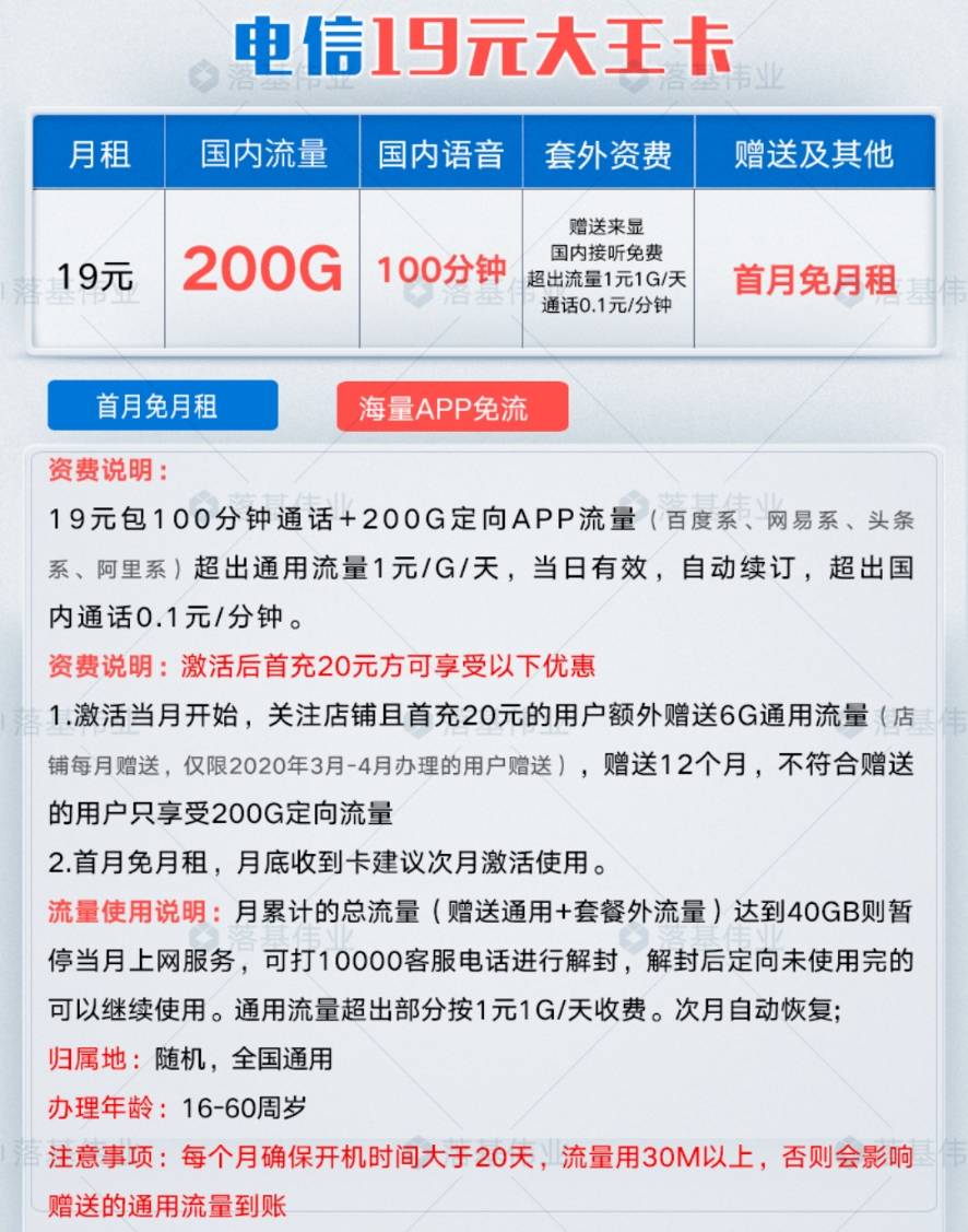 19元80G流量卡电信联通(中国电信19元80g流量卡)